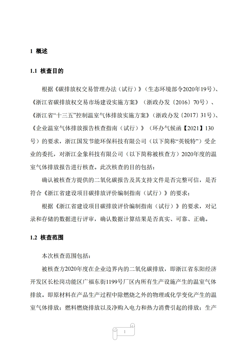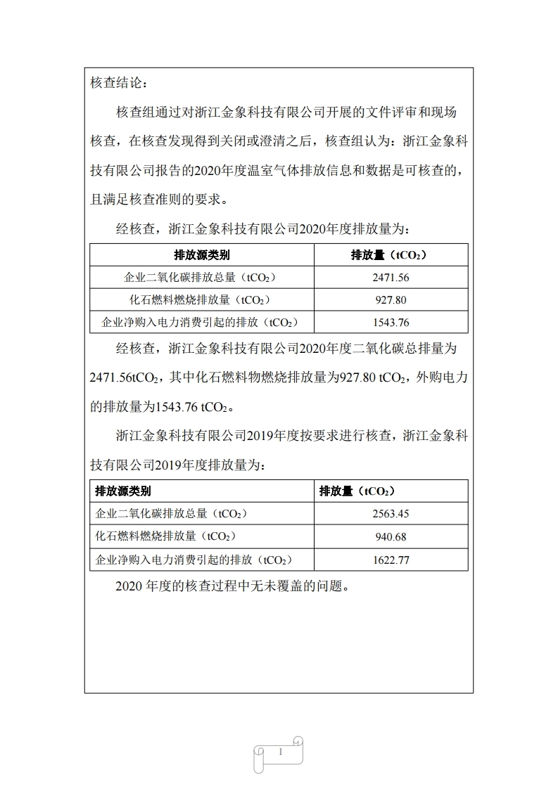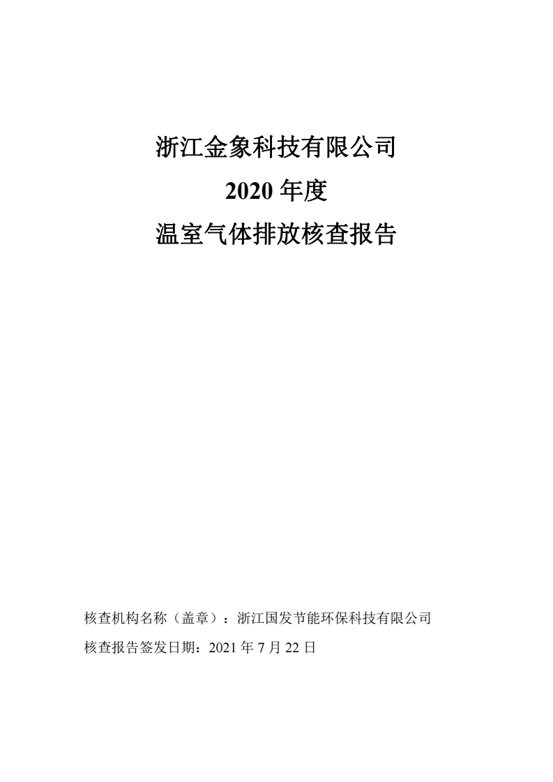 浙江金象科技有限公司2020年度溫室氣體排放核查報告