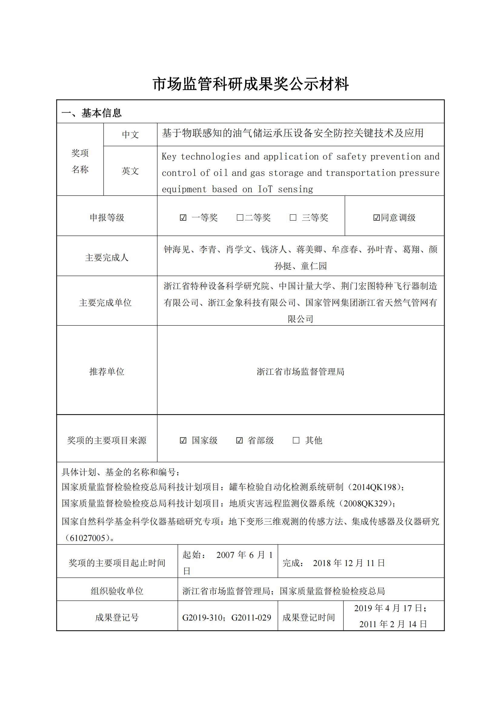 市場監(jiān)管科研成果獎公示材料-基于物聯(lián)感知的油氣儲運承壓設(shè)備安全防控關(guān)鍵技術(shù)及應(yīng)用
